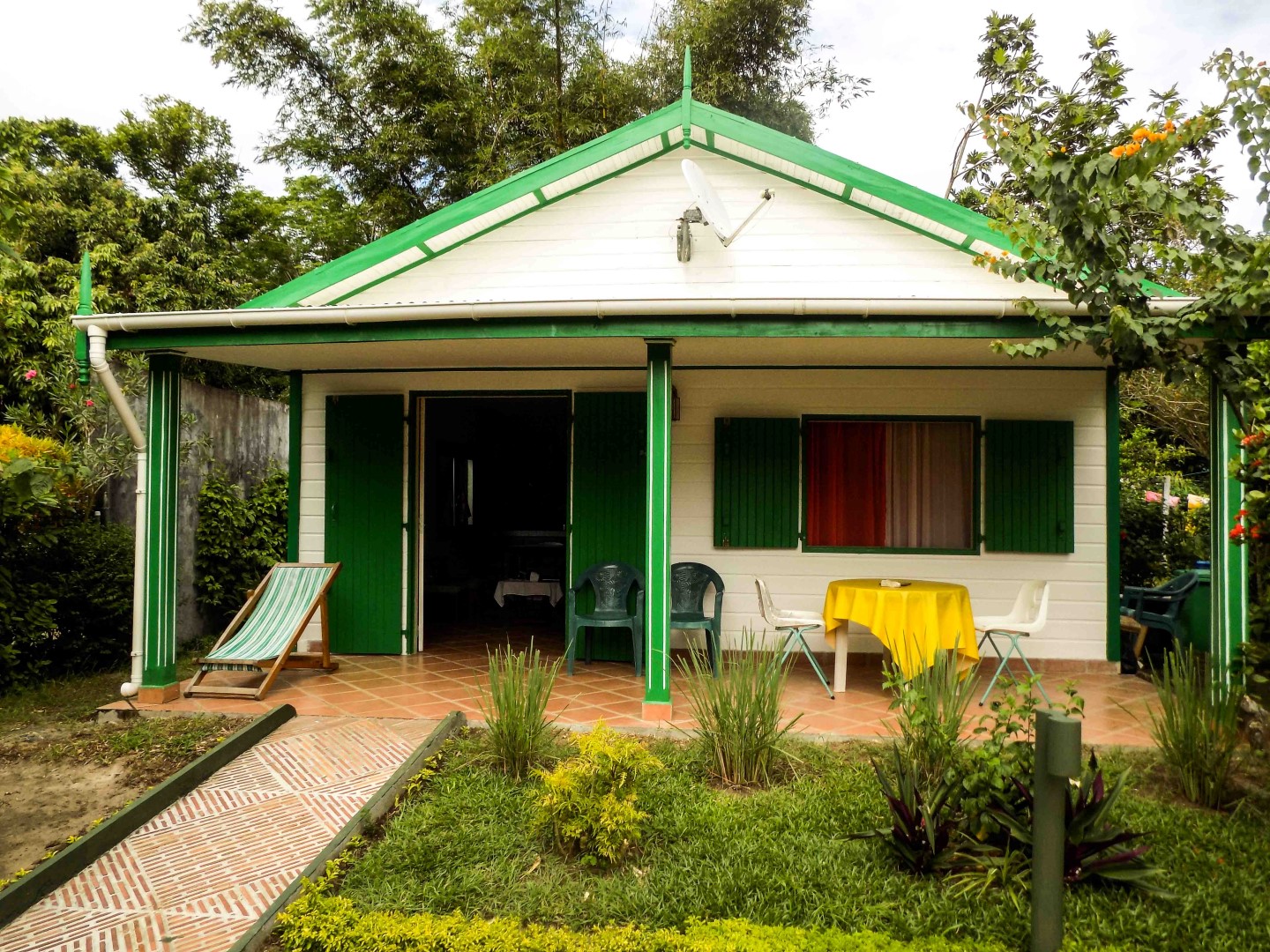 Pour 2 à 4 personnes, 1 chambre climatisée ou ventilée deux personnes, salon avec clic-clac 2 personnes, cuisine équipée, gazinière 4 feux, four, hotte aspirante, réfrigérateur compartiment conservateur, évier eau chaude, coin salle à manger, écran plat, canal +,, wifi, le tout ventilé, (la vaisselle et les accessoires sont prévus pour 6 personnes), salle de bain avec eau chaude, coffre fort, terrasse privative, salon de jardin, tout ceci dans un cadre de verdure avec vue sur la mer premier plan.